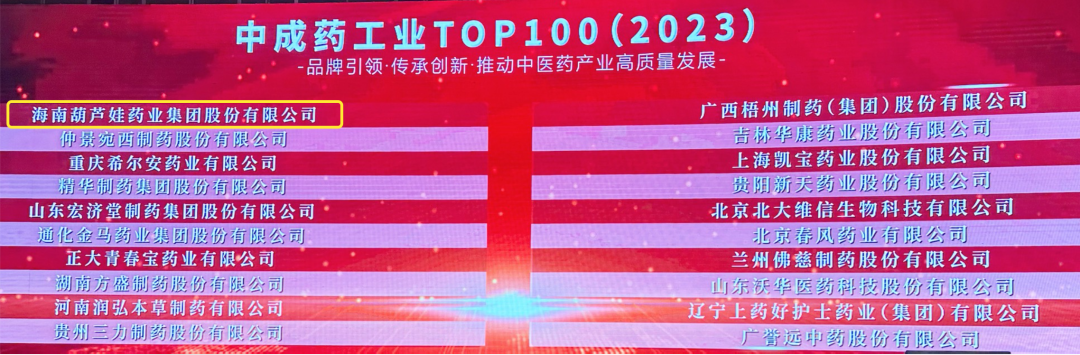 会上,还发布了“2023中成药工业TOP100”榜单,DB真人药业集团荣耀上榜。